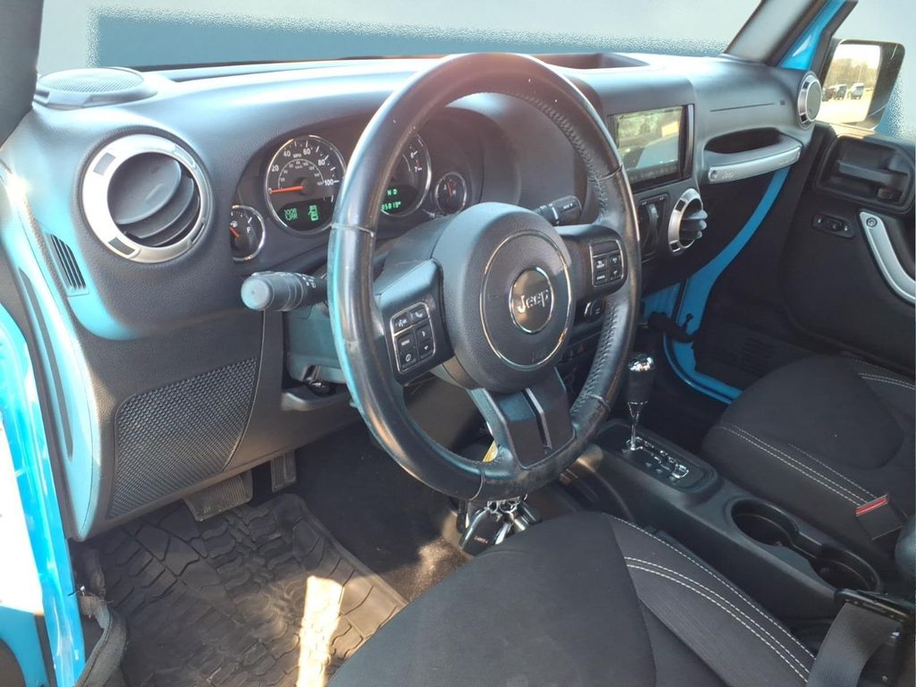 Start this mid-size suv from inside with remote start. This unit features a hands-free Bluetooth phone system. This Jeep Wrangler has a clean AutoCheck report. Set the temperature exactly where you are most comfortable in this mid-size suv. The fan speed and temperature will automatically adjust to maintain your preferred zone climate. The Jeep Wrangler has a V6, 3.6L high output engine. Impresses the most discerning driver with the deep polished blue exterior on the Jeep Wrangler. This mid-size suv has four wheel drive capabilities. The Electronic Stability Control will keep you on your intended path. Anti-lock brakes will help you stop in an emergency. This model features cruise control for long trips. The Jeep Wrangler has fog lights for all weather conditions. This Jeep Wrangler is equipped with a gasoline engine. The high efficiency automatic transmission shifts smoothly and allows you to relax while driving. The spacious cabin accommodates your family and friends in comfort. Take it to the mountains or the beach. this unit can handle it all.