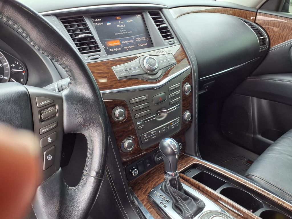 The Nissan Armada has a clean AutoCheck report. See what's behind you with the back up camera on this Nissan Armada. It features a high end BOSE stereo system. The leather seats in the Nissan Armada are a must for buyers looking for comfort, durability, and style. It has automated speed control that adjusts to maintain a safe following distance, enhancing highway driving convenience. Keep your hands warm all winter with a heated steering wheel in this Nissan Armada . Bluetooth technology is built into this 1/2 ton suv, keeping your hands on the steering wheel and your focus on the road. The installed navigation system will keep you on the right path. Never get into a cold vehicle again with the remote start feature on this 2018 Nissan Armada . Maintaining a stable interior temperature in this model is easy with the climate control system. It has four wheel drive capabilities.