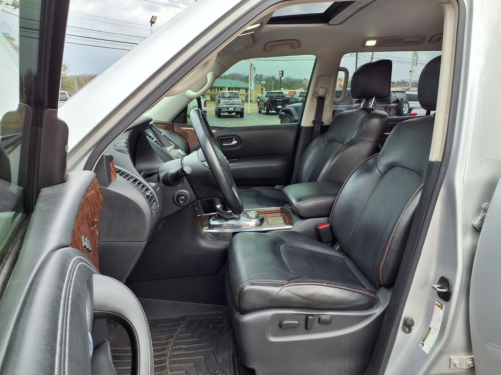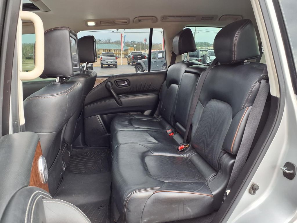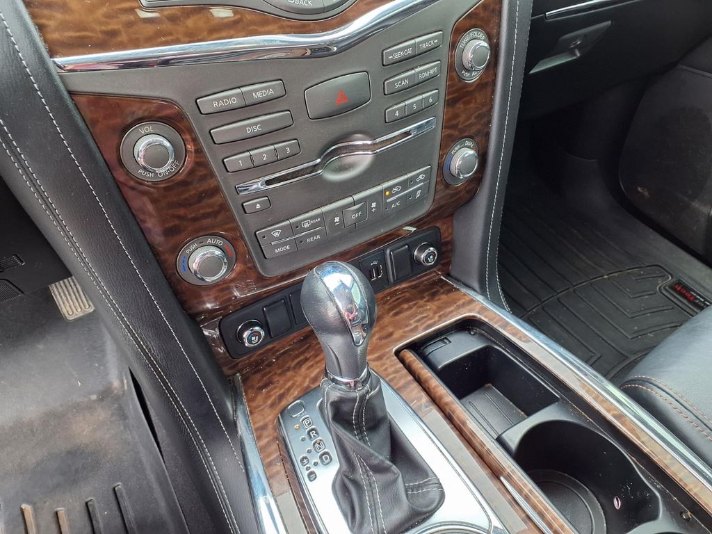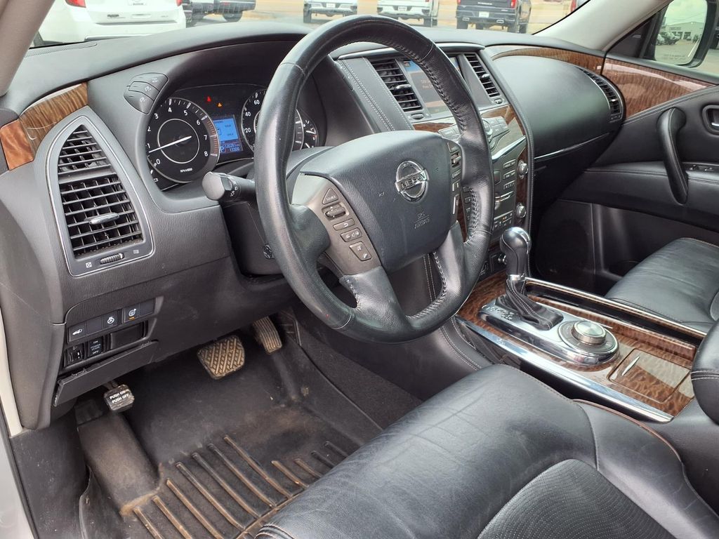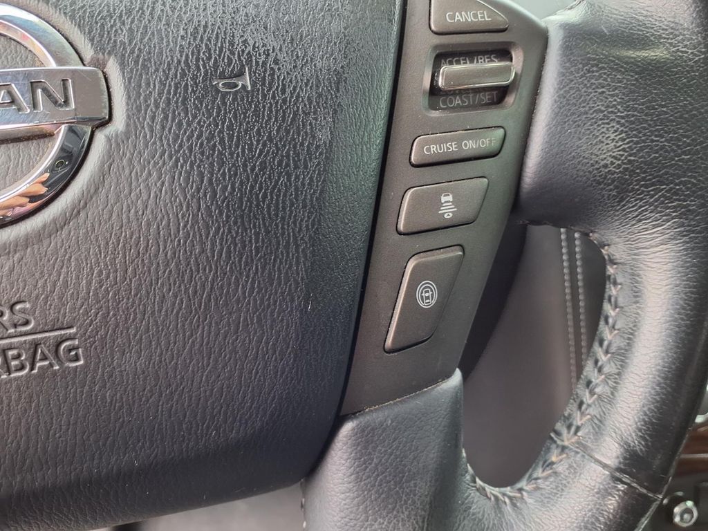 The Nissan Armada has a clean AutoCheck report. See what's behind you with the back up camera on this Nissan Armada. It features a high end BOSE stereo system. The leather seats in the Nissan Armada are a must for buyers looking for comfort, durability, and style. It has automated speed control that adjusts to maintain a safe following distance, enhancing highway driving convenience. Keep your hands warm all winter with a heated steering wheel in this Nissan Armada . Bluetooth technology is built into this 1/2 ton suv, keeping your hands on the steering wheel and your focus on the road. The installed navigation system will keep you on the right path. Never get into a cold vehicle again with the remote start feature on this 2018 Nissan Armada . Maintaining a stable interior temperature in this model is easy with the climate control system. It has four wheel drive capabilities.